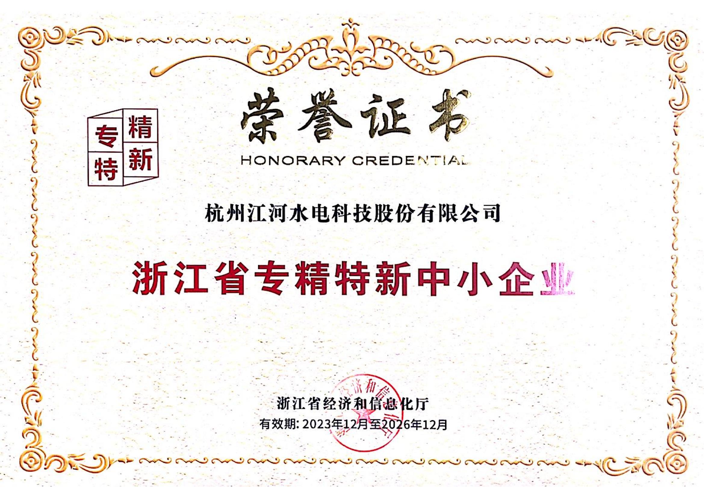 2023年12月,杭州江河水電科技股份有限公司在浙江省企業(yè)創(chuàng)業(yè)創(chuàng)新綜合能力研評(píng)中,榮獲“浙江省專精特新企業(yè)”盒“省企業(yè)研究院”的認(rèn)定。